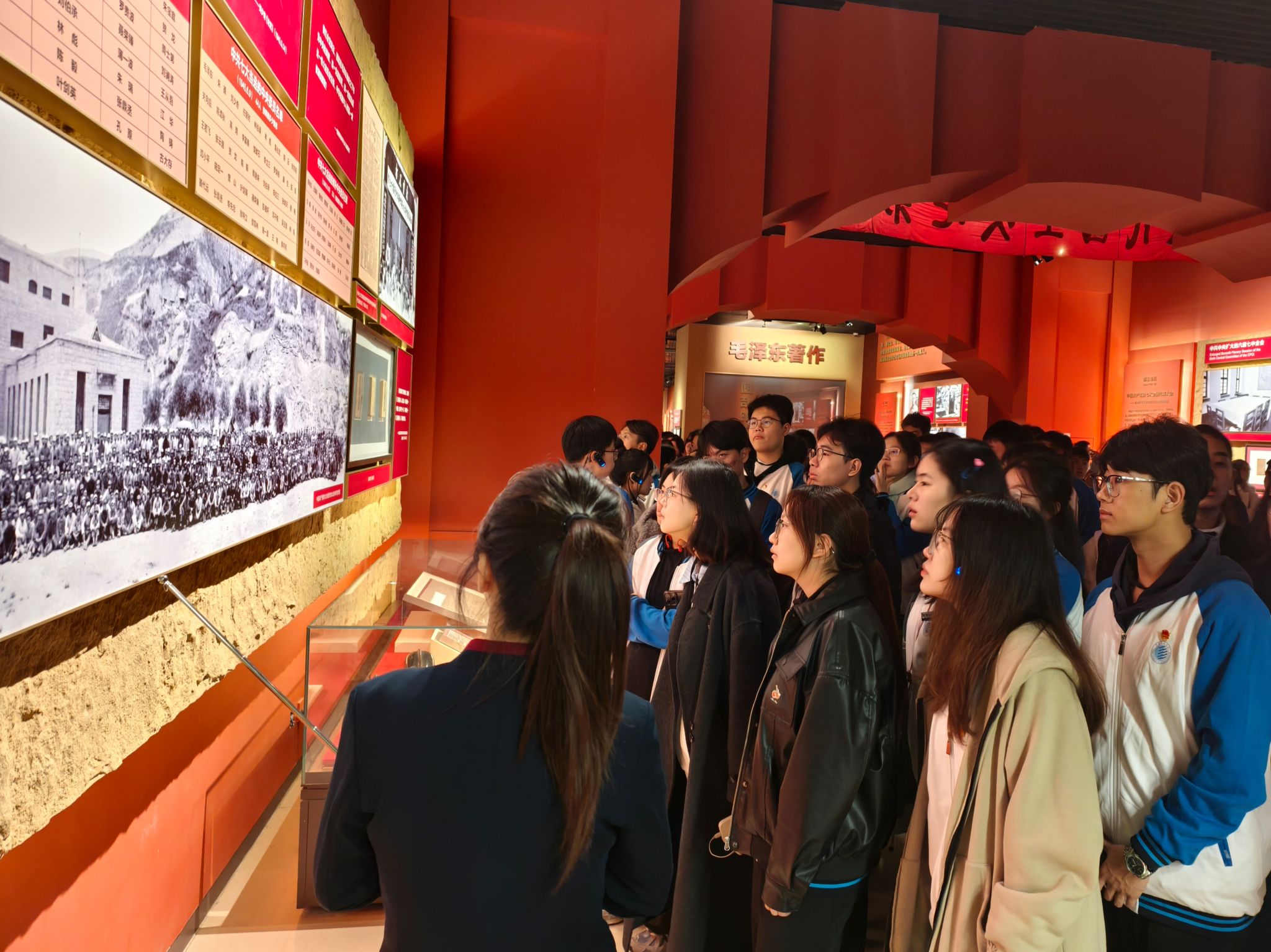 在去往延安的路上,研學團精心打造“車廂課堂”,馬克思主義學院“紅色基因·薪火傳承”研究生宣講團開展主題宣講,各車輛學員自發(fā)開展紅歌傳唱,營造出濃厚的學習氛圍。研學團先后走進延安革命紀念館、棗園革命舊址和為人民服務廣場等,觀看實景演出《延安延安》與主題電影《阿良的長征》。在張思德烈士雕塑前,延安干部學院講師安治國為全體師生做主題宣講,研學團成員集體誦讀《為人民服務》全文。師生們通過實地參觀、現(xiàn)場教學、情景體驗等多種形式,在行走中感悟歷史,在思考中砥礪初心。