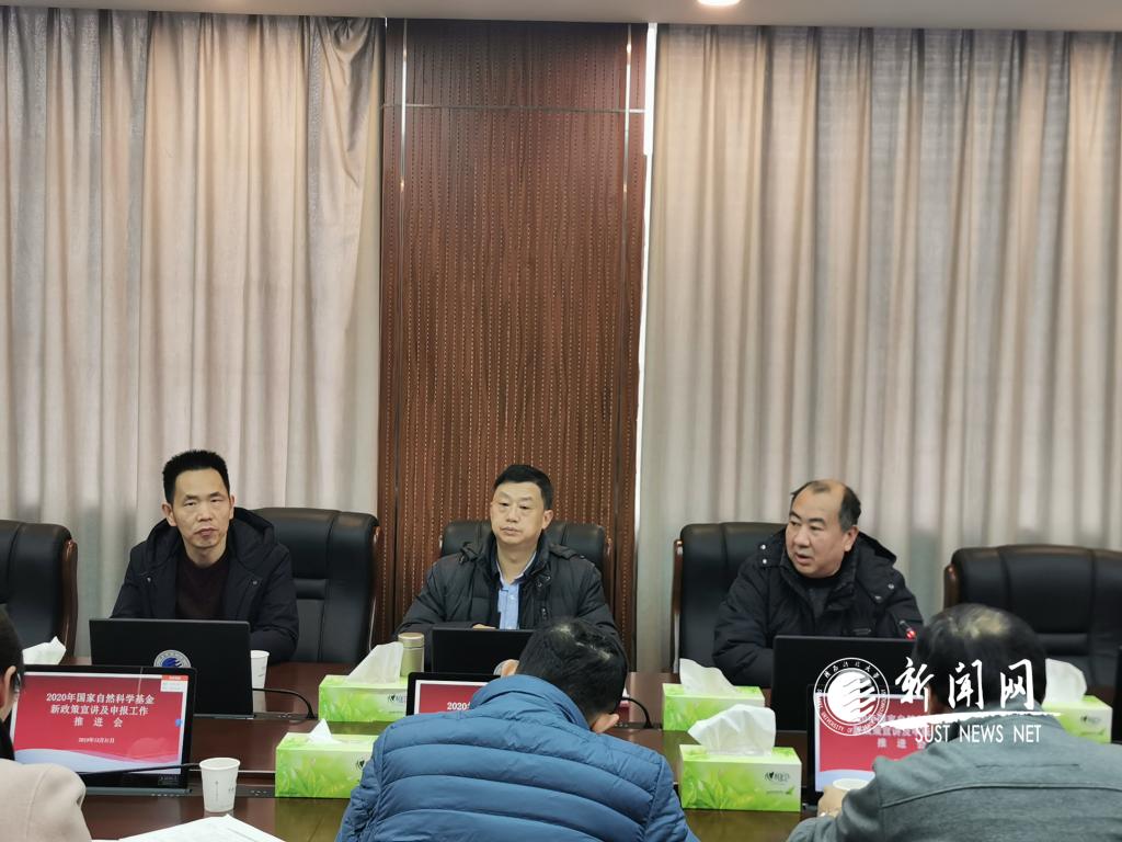為及時(shí)讓廣大教師了解2020年國(guó)家自然科學(xué)基金的改革思路,12月31日下午在逸夫樓506會(huì)議室,科技處召開(kāi)了2020年國(guó)家自然科學(xué)基金新政策宣講及申報(bào)工作推進(jìn)會(huì)。副校長(zhǎng)黃劍鋒出席會(huì)議并作講話,各學(xué)院主管科研負(fù)責(zé)人、科研秘書(shū),科技處相關(guān)人員參加會(huì)議。會(huì)議由科技處處長(zhǎng)楊軍主持。