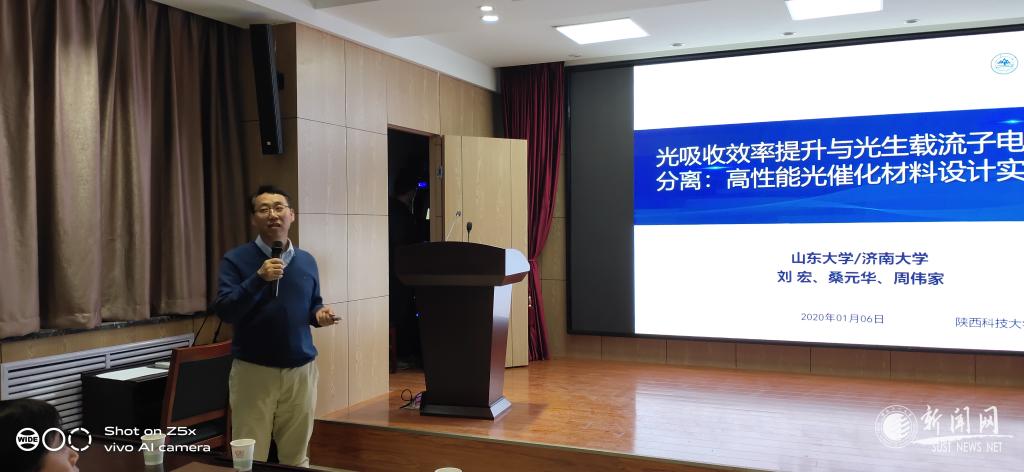 1月6日下午,應(yīng)我校科技處、前沿院及輕工科學(xué)與工程學(xué)院邀請(qǐng),山東大學(xué)晶體材料國(guó)家重點(diǎn)實(shí)驗(yàn)室、濟(jì)南大學(xué)前沿交叉科學(xué)研究院劉宏教授做客我?!扒把乜茖W(xué)報(bào)告”,并做了題為“光吸收效率提升與光生載流子分離:高性能光催化材料設(shè)計(jì)策略”的前沿科學(xué)報(bào)告。輕工學(xué)院相關(guān)專業(yè)教師、研究生參加了此次報(bào)告會(huì),輕工學(xué)院副院長(zhǎng)呂斌教授主持了本次報(bào)告會(huì)。