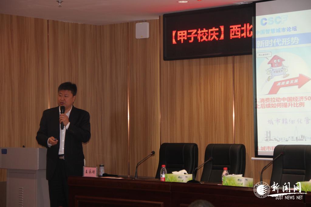 在西部智慧城市論壇上,經(jīng)管學(xué)院副院長薛儉、論壇副秘書長王永剛分別做主旨報(bào)告。薛儉介紹了我校西北智慧城市研究中心的發(fā)展思路,下一步將通過產(chǎn)學(xué)研的結(jié)合,接洽地方政府,調(diào)研地方需求,制定解決方案,推動(dòng)西北智慧城市的創(chuàng)新發(fā)展。王永剛介紹了中國智慧城市發(fā)展歷史、中央支持政策及新時(shí)代智慧城市發(fā)展趨勢(shì)和模式。蔡宏超作為企業(yè)代表向研究中心成立表示祝賀,并表示將與中心一道共同推動(dòng)西北智慧城市的創(chuàng)新發(fā)展。