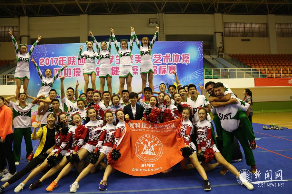 6月5日至7日,由陜西省教育廳主辦,陜西省學(xué)生體育協(xié)會(huì),西安郵電大學(xué)承辦的2017年陜西省大學(xué)生健美藝術(shù)體操啦啦操錦標(biāo)賽在西安郵電大學(xué)舉行,我校啦啦操隊(duì)榮獲舞蹈啦啦操花球自編和集體技巧兩項(xiàng)冠軍。