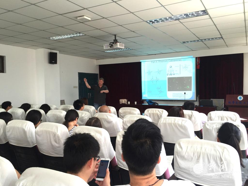 Carl Redshaw 教授做了題為“The coordination chemistry toolbox”的學(xué)術(shù)報(bào)告。講解了他以配合物為研究對象,在可用于生物降解聚合物的新型催化劑、金屬成像/抗癌劑、氣體儲存、水分解和傳感器方面開展的研究工作及取得的研究成果。