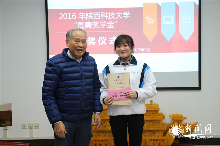 1月6日下午,第四屆“周廉獎學金”頒獎儀式在逸夫樓506會議室舉行。四年來,該獎學金共獎勵學生80名,獎勵金額40萬元。我校名譽校長周廉,西安天力金屬復合材料有限公司董事、副總經理周穎剛,校長姚書志,校黨委副書記溫鋒及19名獲獎學生參加了頒獎儀式。儀式由學工部部長主持。