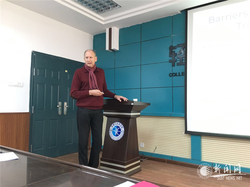 11月14日,應(yīng)輕工科學(xué)與工程學(xué)院邀請(qǐng),美國緬因州立大學(xué)教授亞拉恩·范·海寧根(Adriaan Van Heiningen)來我校進(jìn)行了為期兩天的學(xué)術(shù)交流,作了題為“造紙黒液和甲酸鈉混合物熱解制備酚醛生物質(zhì)油”的“導(dǎo)師論壇”系列學(xué)術(shù)報(bào)告。報(bào)告會(huì)在實(shí)驗(yàn)樓1B318舉行,會(huì)議由副院長張素風(fēng)教授主持。
