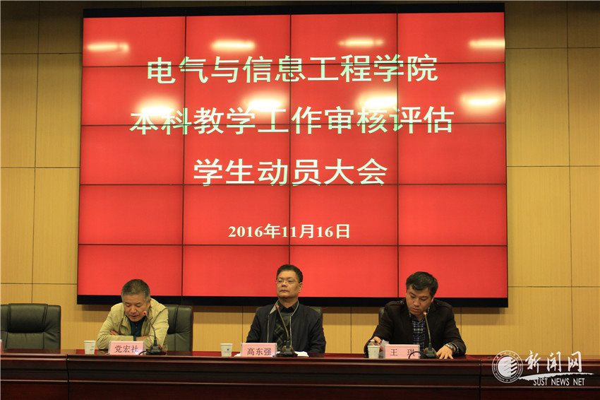 11月16日晚,電氣與信息工程學(xué)院在圖書館一樓學(xué)術(shù)報告廳舉行了本科教學(xué)工作審核評估學(xué)生動員大會。院黨委書記高東強、院長黨宏社、院黨委副書記王琪出席會議,學(xué)院全體舍長、學(xué)生干部、黨員代表、全體輔導(dǎo)員等500余人參加了會議。會議由學(xué)生工作負(fù)責(zé)人趙偉鋒主持。