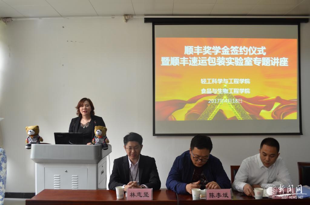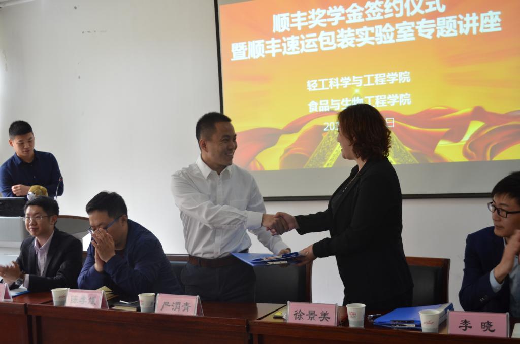 4月18日,順豐企業(yè)獎學(xué)金在我校輕工科學(xué)與工程學(xué)院、食品與生物工程學(xué)院設(shè)立。兩個學(xué)院聯(lián)合舉辦了獎學(xué)金簽約儀式,相關(guān)院領(lǐng)導(dǎo)、順豐速運包裝實驗室負責(zé)人徐景美、順豐速運人才管理處人才管理高級經(jīng)理張燕、順豐集團招聘組招聘高級經(jīng)理李少強、林志堅出席儀式。