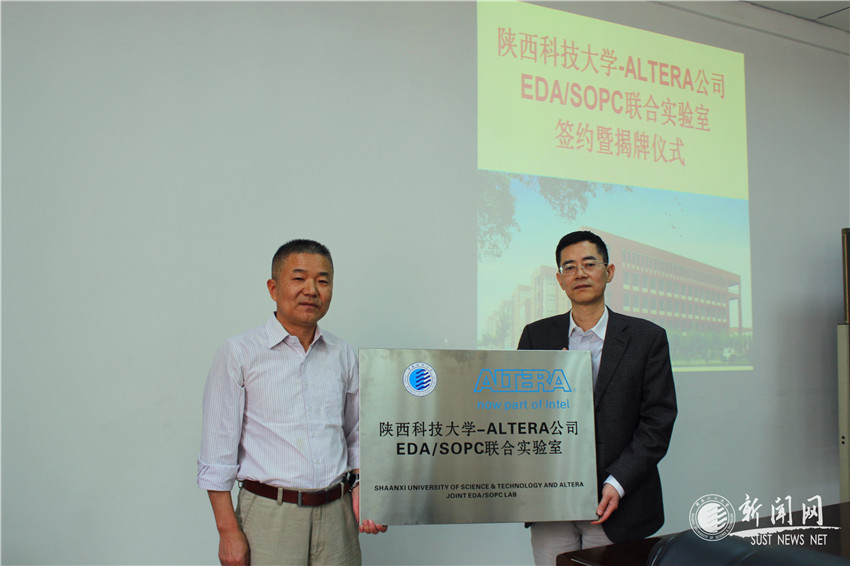 近期,“陜西科技大學(xué)-ALTERA公司EDA/SOPC聯(lián)合實驗室簽約暨揭牌儀式”在電氣與信息工程學(xué)院會議室舉行。出席會議的有副校長王學(xué)川,ALTERA中國區(qū)大學(xué)計劃經(jīng)理陳衛(wèi)中,電信學(xué)院院長黨宏社、副院長李健,會議由李健主持。