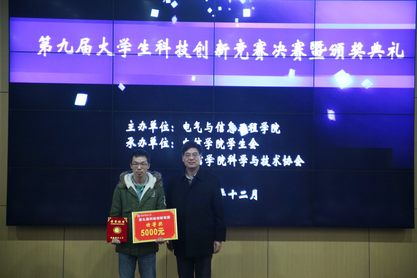 2015年12月30日晚,我校第九屆科技創(chuàng)新大賽決賽暨頒獎儀式現(xiàn)場氣氛熱烈,經(jīng)過激烈的角逐,電氣與信息工程學院的劉強等同學的作品《聯(lián)想心房》一舉摘取特等獎的桂冠,《3D照相館》、《基于LabVIEW的智能導向停車場》兩件作品雙雙榮獲一等獎,其余五組作品分別獲得二等獎。新一批“創(chuàng)新之星”已從這項我校最具影響力的科技類賽事上冉冉升起,將從這里走向更寬、更廣闊的舞臺。