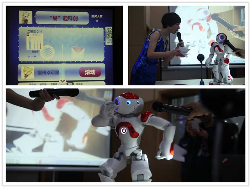 本次比賽首次以“易班”為網(wǎng)絡互動平臺,通過全新的抽獎環(huán)節(jié),調(diào)動了現(xiàn)場觀眾的積極性和參與感。決賽現(xiàn)場更現(xiàn)神秘嘉賓——學院實驗室研究項目“NAO機器人”,它為現(xiàn)場觀眾獻上兩支動感舞蹈,并通過與主持人的靈活對話,讓在場同學領略到了科技創(chuàng)新的魅力,將現(xiàn)場氣氛推向了高潮。