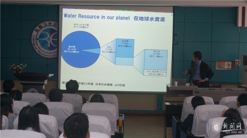 5月31日上午,藤原拓教授還在環(huán)境學(xué)院學(xué)術(shù)報告廳為學(xué)院師生作了題為《Can we simultaneously realize a sustainable water environment and economic growth?》的學(xué)術(shù)報告,從農(nóng)業(yè)固體廢棄物資源化利用和經(jīng)濟增長的角度分析了日本出現(xiàn)的環(huán)境問題。環(huán)境學(xué)院近百名師生參加了此次學(xué)術(shù)報告會。