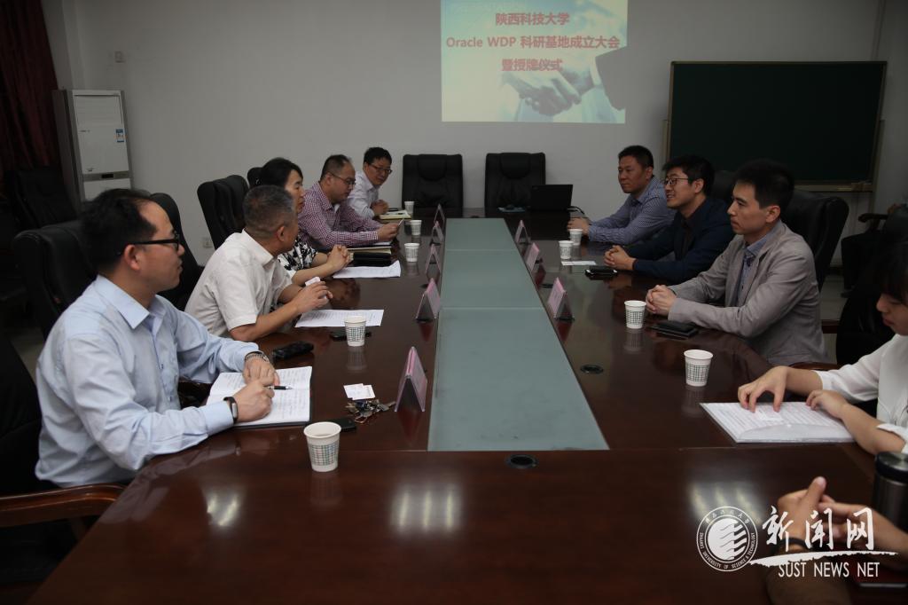 5月25日, Oracle University北方區(qū)經(jīng)理郭碧琨、Partner公司(西安優(yōu)盛)技術(shù)總監(jiān)雷建軍等一行5人來到陜西科技大學(xué)電信學(xué)院,共同舉行了陜西科技大學(xué)Oracle WDP(職業(yè)發(fā)展計(jì)劃)科研基地成立大會(huì)暨授牌儀式。學(xué)校總會(huì)計(jì)師徐曉峰、電信學(xué)院院長(zhǎng)黨宏社及領(lǐng)導(dǎo)班子成員參加了授牌儀式。