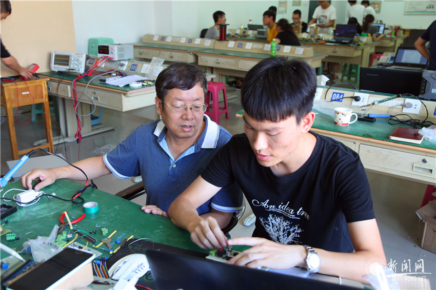 晚上10點(diǎn)鐘,電氣與信息工程學(xué)院實(shí)驗(yàn)室依然燈火通明,全國(guó)大學(xué)生電子設(shè)計(jì)競(jìng)賽陜西賽區(qū)的比賽正在如火如荼地進(jìn)行著,17個(gè)競(jìng)賽團(tuán)隊(duì)的51名參賽學(xué)子不畏酷暑,正聚精會(huì)神地準(zhǔn)備著各自的競(jìng)賽作品。張震強(qiáng)、侯勇嚴(yán)兩位負(fù)責(zé)老師表示,電子設(shè)計(jì)競(jìng)賽是全國(guó)大學(xué)生四大學(xué)科競(jìng)賽之一,學(xué)校歷來(lái)重視,從3月份開始,我校13名指導(dǎo)老師就通過(guò)初步選拔、集中培訓(xùn)、學(xué)生分組、專項(xiàng)培訓(xùn)、賽前強(qiáng)化等環(huán)節(jié)準(zhǔn)備今年的比賽。學(xué)生們熱情也極高,從8月9日上午8點(diǎn)至12日晚8點(diǎn),從選題開始,到出設(shè)計(jì)報(bào)告、動(dòng)手制作實(shí)物作品,他們分秒必爭(zhēng),以飽滿的熱情、堅(jiān)定的信念不斷努力著。張震強(qiáng)表示,電子設(shè)計(jì)競(jìng)賽的舉辦,對(duì)我校電子信息類課程的教學(xué)改革與促進(jìn)起到推動(dòng)作用,也培養(yǎng)了學(xué)生的創(chuàng)新能力、實(shí)踐操作能力以及團(tuán)隊(duì)協(xié)作精神,這個(gè)暑假,師生收獲都很大。