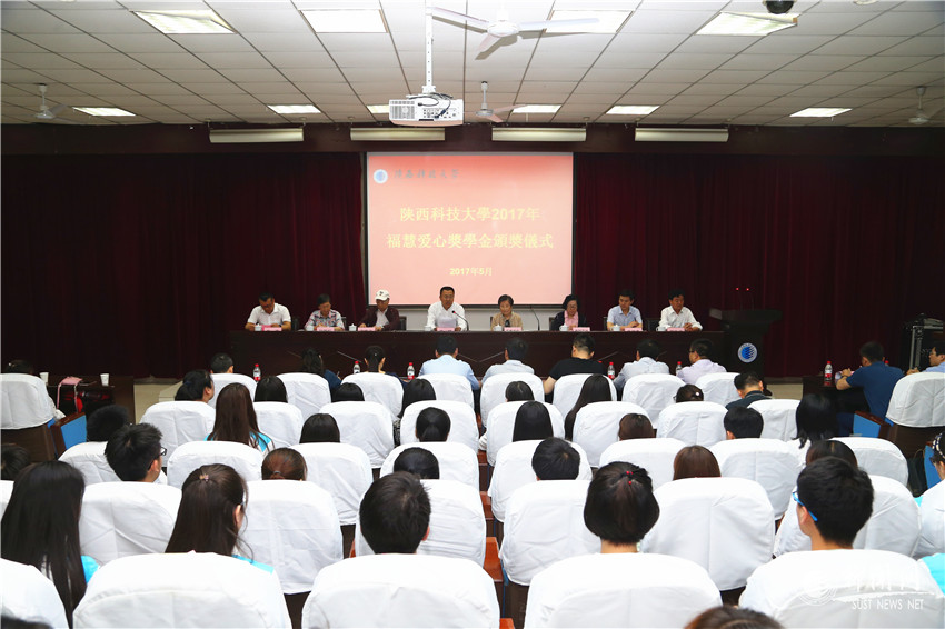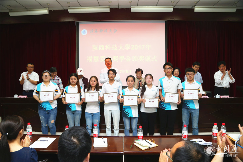 學(xué)工部部長楊建宣讀了《陜西科技大學(xué)2017年?;鄞壬苹饡坌莫剬W(xué)金受助學(xué)生名單》,與會嘉賓和領(lǐng)導(dǎo)為受助學(xué)生頒發(fā)了證書和獎學(xué)金。