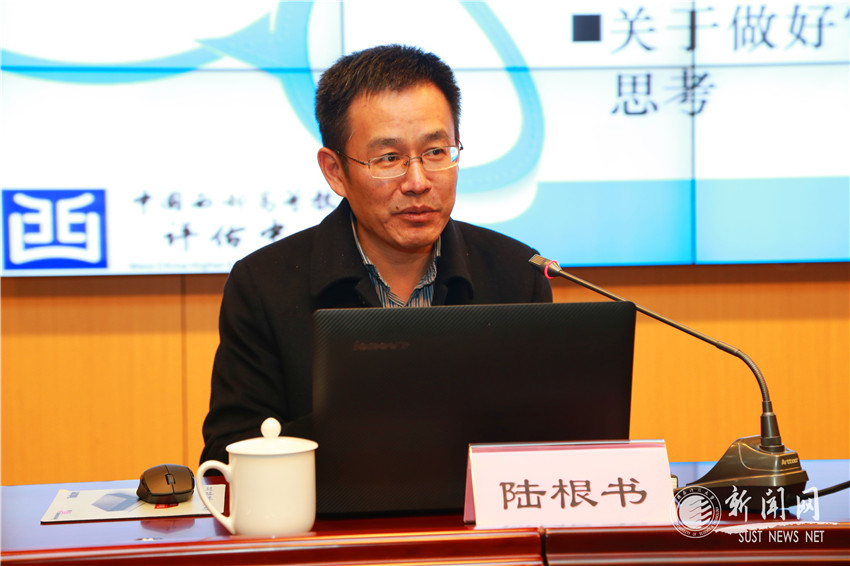 陸根書教授在報(bào)告中,從審核評(píng)估的由來(lái)與重要意義、審核評(píng)估的內(nèi)涵與特點(diǎn)和關(guān)于做好審核評(píng)估的幾點(diǎn)思考等三個(gè)方面,深入解讀了學(xué)校做好迎評(píng)促建工作。他介紹了本科教學(xué)工作審核評(píng)估的目標(biāo)、重要內(nèi)容與基本形式、重要意義,剖析了審核評(píng)估與在全國(guó)高校開展的第一輪本科教學(xué)工作水平評(píng)估相比呈現(xiàn)的重要調(diào)整和特點(diǎn),以及陜西省審核評(píng)估工作及其特色,并就如何界定高校辦學(xué)定位于人才培養(yǎng)目標(biāo)定位、如何認(rèn)識(shí)教學(xué)質(zhì)量標(biāo)準(zhǔn)、如何理解審核評(píng)估方案中的“特色項(xiàng)目”、學(xué)校自評(píng)如何體現(xiàn)“五個(gè)度”等問(wèn)題,談了自己的認(rèn)識(shí)和體會(huì)。