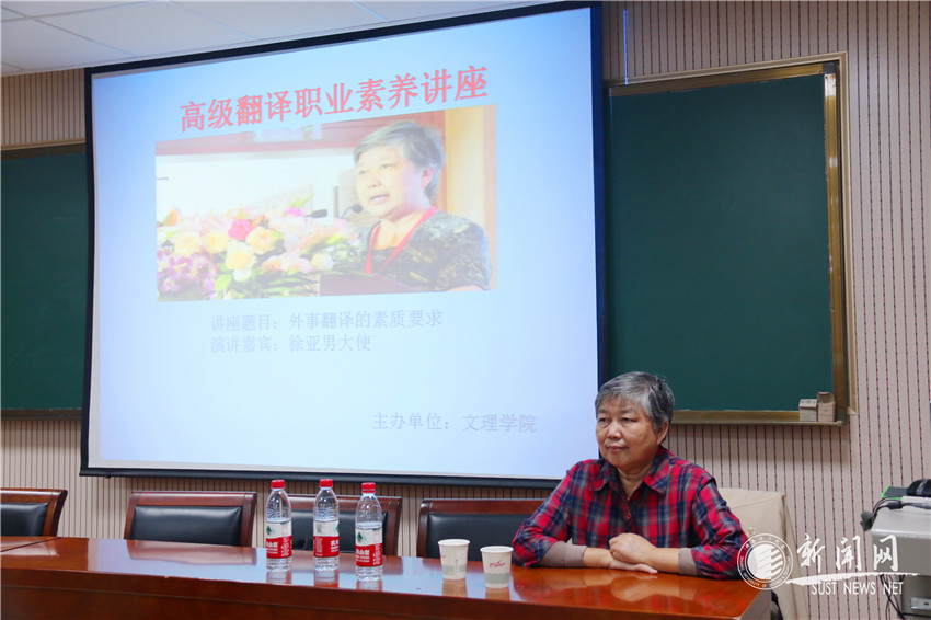 10月14日下午,應(yīng)研究生院、文理學(xué)院邀請(qǐng),外交部前翻譯室主任徐亞男大使來我校作了題為“外事翻譯的素質(zhì)要求”的學(xué)術(shù)報(bào)告。報(bào)告會(huì)由文理學(xué)院院長(zhǎng)藺小林教授主持。文理學(xué)院外語(yǔ)系教師、翻譯碩士研究生及英語(yǔ)專業(yè)本科生參加,西安工業(yè)大學(xué)有關(guān)老師代表也專程聆聽了報(bào)告。