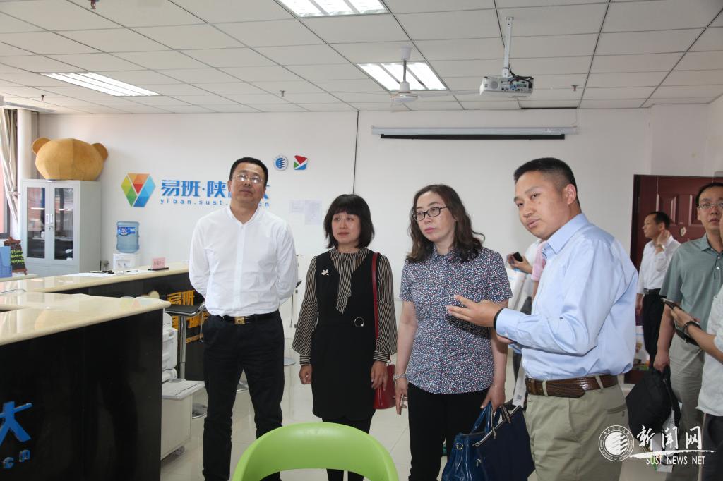校黨委副書記溫鋒(左一)陪同王莉(左三)等參觀了我校易班學生工作站
