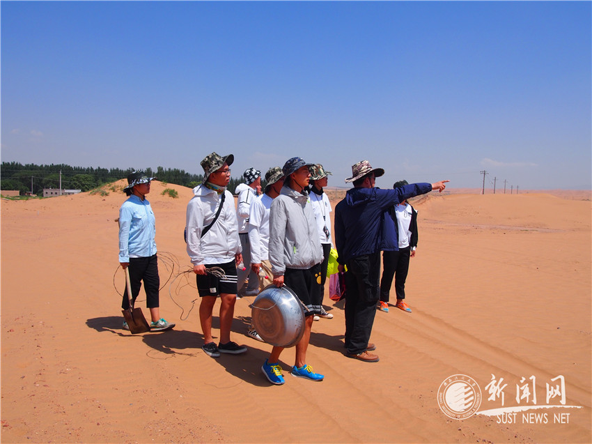 “防風固沙”——“沙漠衛(wèi)士”科技綠化社會實踐團。7月14日,材料學院"沙漠衛(wèi)士"科技綠化實踐團來到寧夏中衛(wèi),展開為期7天的社會實踐活動。實踐團深入騰格里沙漠,調研公路沿邊植物的生長環(huán)境和形狀特點,實地考察、采集沙漠植株,并采取控制變量法對沙漠植株進行集水測試。實踐團還對沙漠周邊居民進行調研,實地參觀了解沙坡頭試驗基地,學習其他防風固沙項目,并采取單一變量法勘探沙丘遷移,繪制沙丘剖面圖。