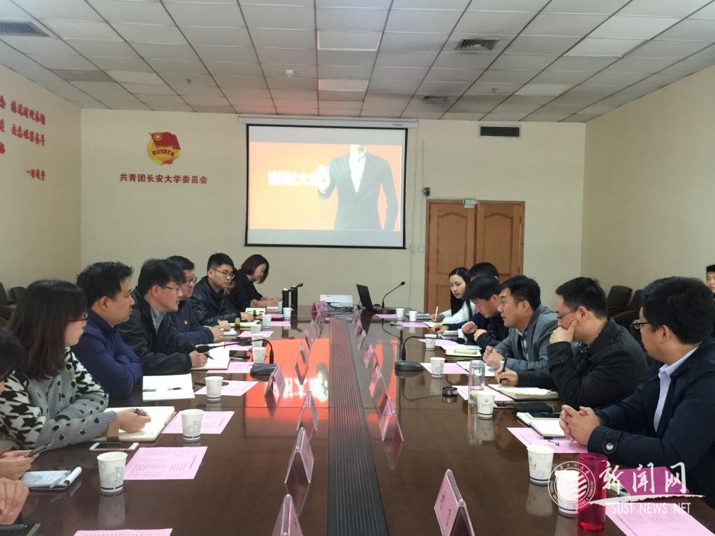 為提升我校共青團(tuán)系統(tǒng)的工作水平,4月11日,校團(tuán)委書記鄭東帶領(lǐng)校團(tuán)委相關(guān)人員及我校全體二級學(xué)院團(tuán)學(xué)工作負(fù)責(zé)人一行14人赴長安大學(xué)開展共青團(tuán)工作經(jīng)驗(yàn)交流。長安大學(xué)校團(tuán)委書記張永攜團(tuán)委全體工作人員以及部分學(xué)院團(tuán)委書記參與了此次調(diào)研活動。