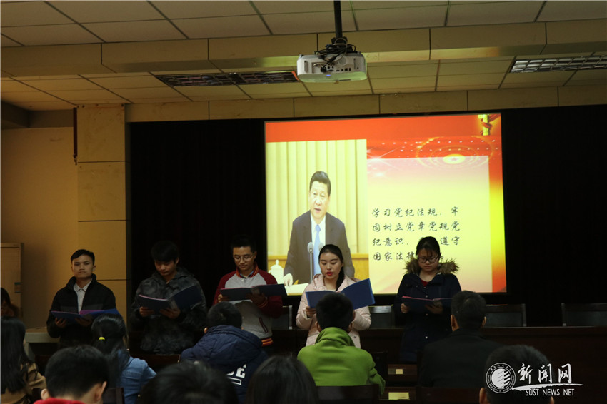 能動專業(yè)學生黨支部于12月22日開展“不忘初心,黨員朗誦”主題黨日活動。學院黨委書記夏祥林作為黨支部聯(lián)系人出席本次活動。夏祥林講解了黨委委員聯(lián)系黨支部的工作制度,并對此次黨日活動的內容和形式進行了充分肯定。他指出,大學生黨員要珍惜現(xiàn)在的大學時光,要將實現(xiàn)遠大抱負與腳踏實地相結合,規(guī)劃好大學四年生活,做一名有理想、有擔當?shù)男聲r代大學生黨員。支部全體黨員同志莊嚴舉起右拳,重溫入黨誓詞。鏗鏘有力的誓詞是一種無形的力量,提醒每一位黨員同志增強黨性修養(yǎng),時刻不忘黨員的初心和使命。37名黨員和積極分子分別從黨的十九大報告、《習近平談治國理政》、《習近平的七年知青歲月》、《之江新語》、《習近平:青年要自覺踐行社會主義核心價值觀——在北京大學師生座談會上的講話》中節(jié)選7組經典片段進行朗讀,同志們的朗讀生動而富有感染力,給人深深的觸動和思考。機電學院把學習宣傳貫徹好黨的十九大精神作為首要政治任務抓,并以黨的十九大精神指導實踐、凝心聚力,推動工作。