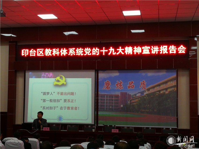 繼在銅川印臺(tái)區(qū)王石凹街道辦進(jìn)行黨的十九大精神宣講后,12月1日,馬克思主義學(xué)院十九大宣講團(tuán)再赴銅川印臺(tái)區(qū),面向印臺(tái)區(qū)教科體局班子成員、基層黨支部委員、局機(jī)關(guān)支部及教研室支部全體黨員等150余人開展理論宣講。此次宣講會(huì)由印臺(tái)區(qū)教科體局副局長(zhǎng)王軍宏主持,我校范昕老師主講。