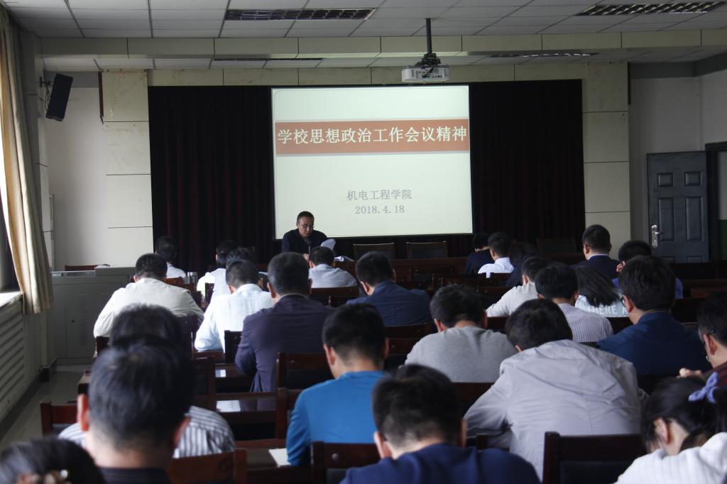 近日,機電工程學院通過召開中心組擴大學習、學生工作專題會議和全體教職工大會,分批次、分類別,有針對、全覆蓋的學習、傳達和貫徹了學校思想政治工作會議精神及校黨委書記姚書志在學校思想政治工作會議上的專題報告。