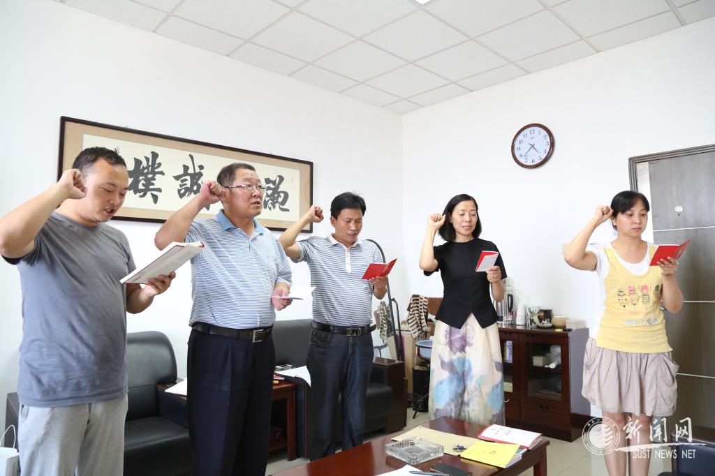 6月29日下午,紀(jì)委辦、監(jiān)察處黨支部舉行了“重溫入黨誓詞”儀式。在支部書記的帶領(lǐng)下,全體黨員面對鮮紅黨旗,高舉右拳,莊重宣誓:“我志愿加入中國共產(chǎn)黨,擁護(hù)黨的綱領(lǐng),遵守黨的章程……永不叛黨?!卞P錚誓詞、字字鏗鏘,表明了一個(gè)共產(chǎn)黨員堅(jiān)持共產(chǎn)主義信仰和中國特色社會主義信念的人生選擇。通過重溫入黨誓詞,全體黨員深深感受到黨員的責(zé)任、使命、榮耀,更堅(jiān)定了理想信念,牢記對黨的承諾,不忘初心、繼續(xù)前進(jìn)。儀式結(jié)束后,王樹茂領(lǐng)學(xué)了《中國共產(chǎn)黨章程》中“黨員”和“黨的組織制度”部分內(nèi)容。