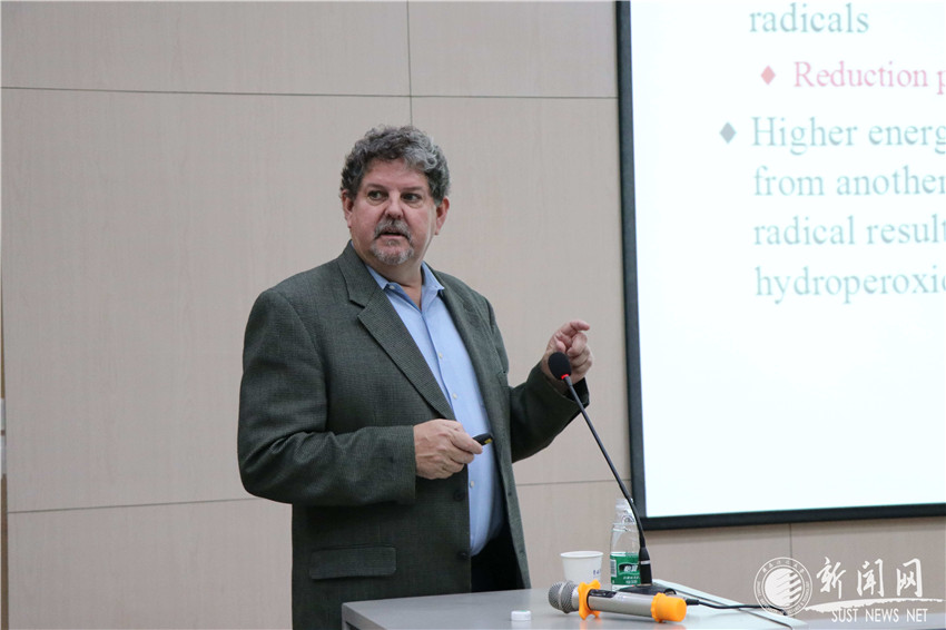 5月25日,美國麻省州立大學(xué)Amherst分校食品科學(xué)系主任Decker教授作客我?!拔囱雽?dǎo)師論壇”,在教師發(fā)展中心培訓(xùn)教室作了題為“Natural Strategies to Control Lipid Oxidation in Foods(控制食品脂質(zhì)氧化的新策略)”的學(xué)術(shù)報告。食品與生物工程學(xué)院教師、研究生及部分本科生參加了此次報告會。