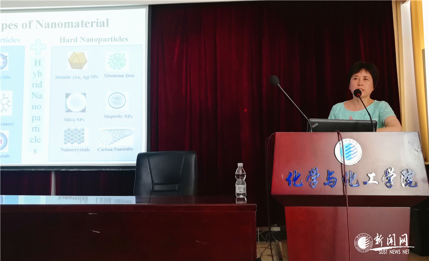 6月12日,受國際處及化工學(xué)院邀請,美國孟菲斯大學(xué)Yongmei Wang教授在學(xué)院報告廳作了題為“理論和實(shí)驗(yàn)共同推進(jìn)納米材料在醫(yī)學(xué)中的應(yīng)用”的學(xué)術(shù)報告。報告會由化工學(xué)院副院長費(fèi)貴強(qiáng)教授主持,國際處副處長(主持工作)薛朝華及化工學(xué)院師生參加了此次報告。Yongmei Wang教授主要從事有關(guān)大分子與納米藥物界面的計算機(jī)模擬工作,她詳細(xì)講解了自己及團(tuán)隊在大分子和納米粒子的分離和表征,基因和藥物傳遞的聚合物系統(tǒng)的多尺度建模,金屬納米粒子的等離子體光學(xué)性質(zhì)以及納米粒子在納米醫(yī)學(xué)中的應(yīng)用等方面所做的研究工作。