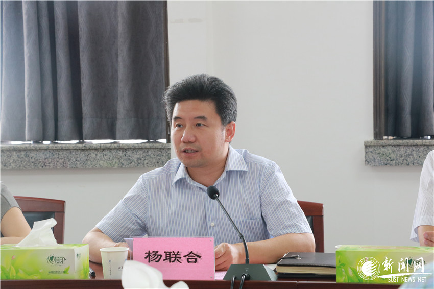 李志健首先對楊聯(lián)合一行來校調(diào)研表示歡迎。李志健介紹了學(xué)?!叭齽?chuàng)兩遷”的創(chuàng)業(yè)歷程及學(xué)校的整體發(fā)展規(guī)劃,結(jié)合實(shí)際介紹了學(xué)校順應(yīng)時(shí)代發(fā)展,緊密結(jié)合社會需求,進(jìn)行學(xué)科發(fā)展,提升專業(yè)內(nèi)涵,使傳統(tǒng)專業(yè)煥發(fā)出了新的生命力和活力。同時(shí),李志健代表學(xué)校對未央?yún)^(qū)委、區(qū)政府對陜西科技大學(xué)給予的支持和幫助表示感謝。