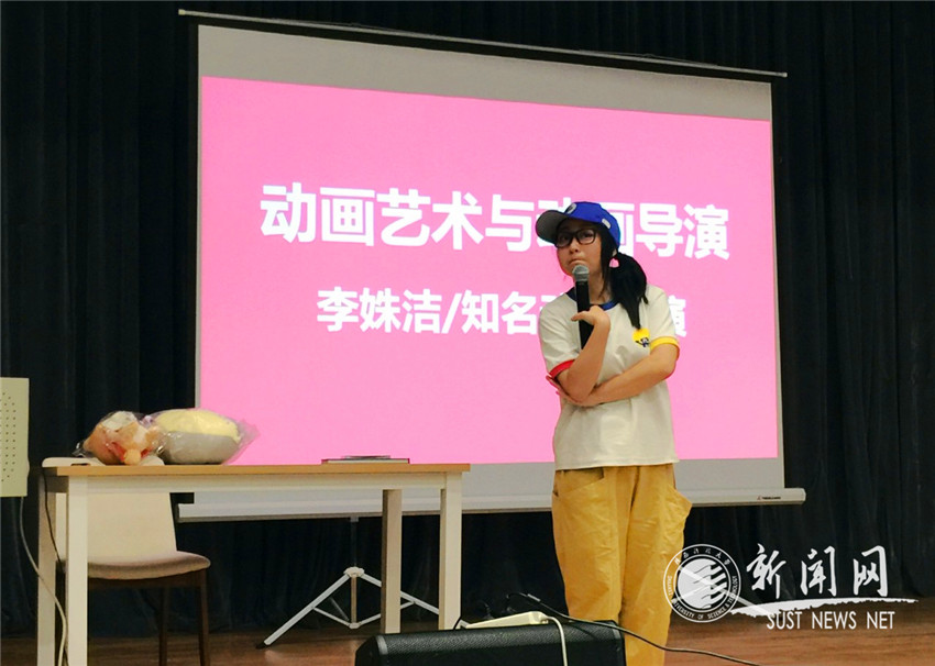 6月26日下午,人氣動(dòng)畫《十萬(wàn)個(gè)冷笑話》導(dǎo)演、我校動(dòng)畫07屆畢業(yè)生——李姝潔導(dǎo)演,做客我?!拔囱雽?dǎo)師論壇”,在人文樓B座五樓多功能廳做了《動(dòng)畫藝術(shù)與動(dòng)畫導(dǎo)演》的主題報(bào)告。設(shè)計(jì)與藝術(shù)學(xué)院相關(guān)專業(yè)師生、部分返校校友到場(chǎng)參加,報(bào)告會(huì)由設(shè)藝學(xué)院副院長(zhǎng)米高峰教授擔(dān)任主持。