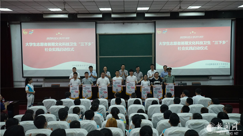 啟動儀式在2017年暑期社會實踐總結宣傳片中拉開帷幕。校團委書記鄭東宣讀了《關于確定2018年陜西科技大學大學生志愿者暑期文化科技衛(wèi)生“三下鄉(xiāng)”社會實踐活動校級立項團隊名單的決定》。隨后,與會領導為我?!叭锣l(xiāng)”社會實踐代表團隊授旗。至此,以“學思踐悟十九大,青春激揚新時代”為主題的我校2018年大學生志愿者暑期文化科技衛(wèi)生“三下鄉(xiāng)”社會實踐活動正式啟動。