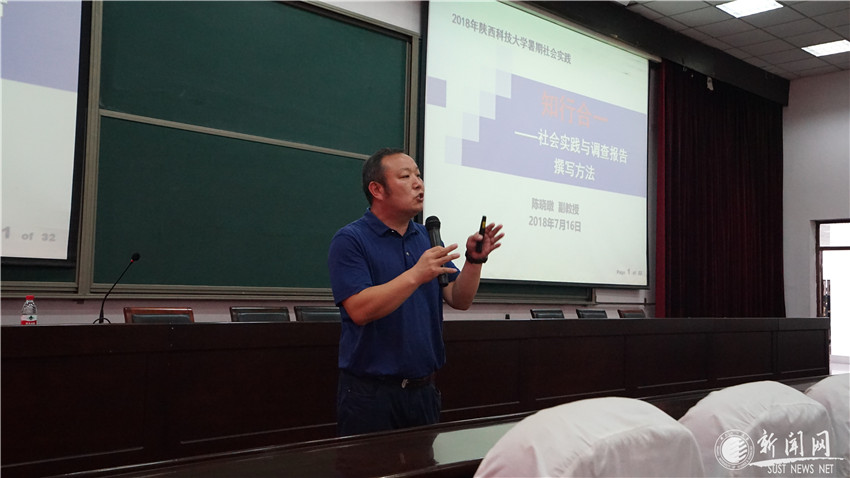 啟動儀式后,經濟與管理學院副教授陳曉暾應邀為全體實踐團隊成員作了題為《知行合一——社會實踐與調查報告撰寫方法》的專題講座,向全體社會實踐隊成員和帶隊老師系統(tǒng)講授了科學調研方法及調研報告的規(guī)范與要求。
