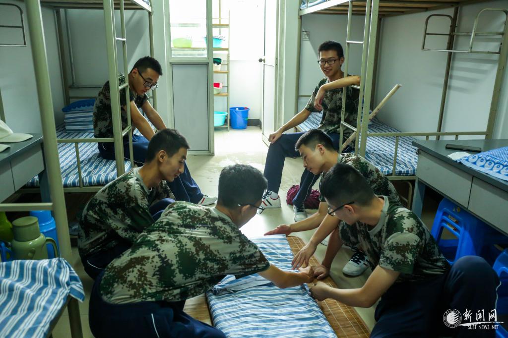 5日,星期三,中雨。暫停室外訓練,教官們教學院整理內(nèi)務。五營學員認真表現(xiàn),精益求精,整齊的衣柜,豆腐塊狀的被子,指導員老師與教官贊不絕口。