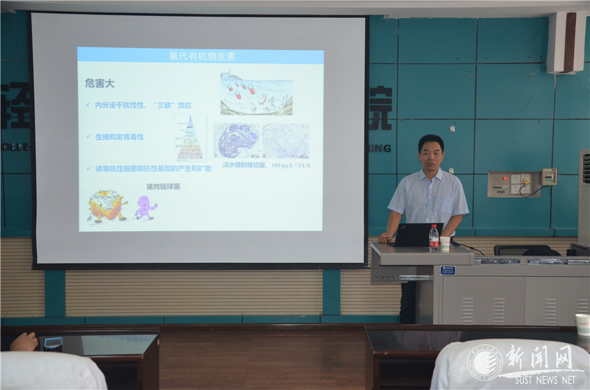 9月7日,應(yīng)我??萍继幖碍h(huán)境科學(xué)與工程學(xué)院邀請,國家杰出青年科學(xué)基金獲得者、霍英東教育基金獲得者、東莞理工學(xué)院牛軍鋒教授作客我?!扒把乜茖W(xué)報(bào)告”,為我校相關(guān)專業(yè)教師、研究生和部分本科生做了精彩的學(xué)術(shù)報(bào)告。