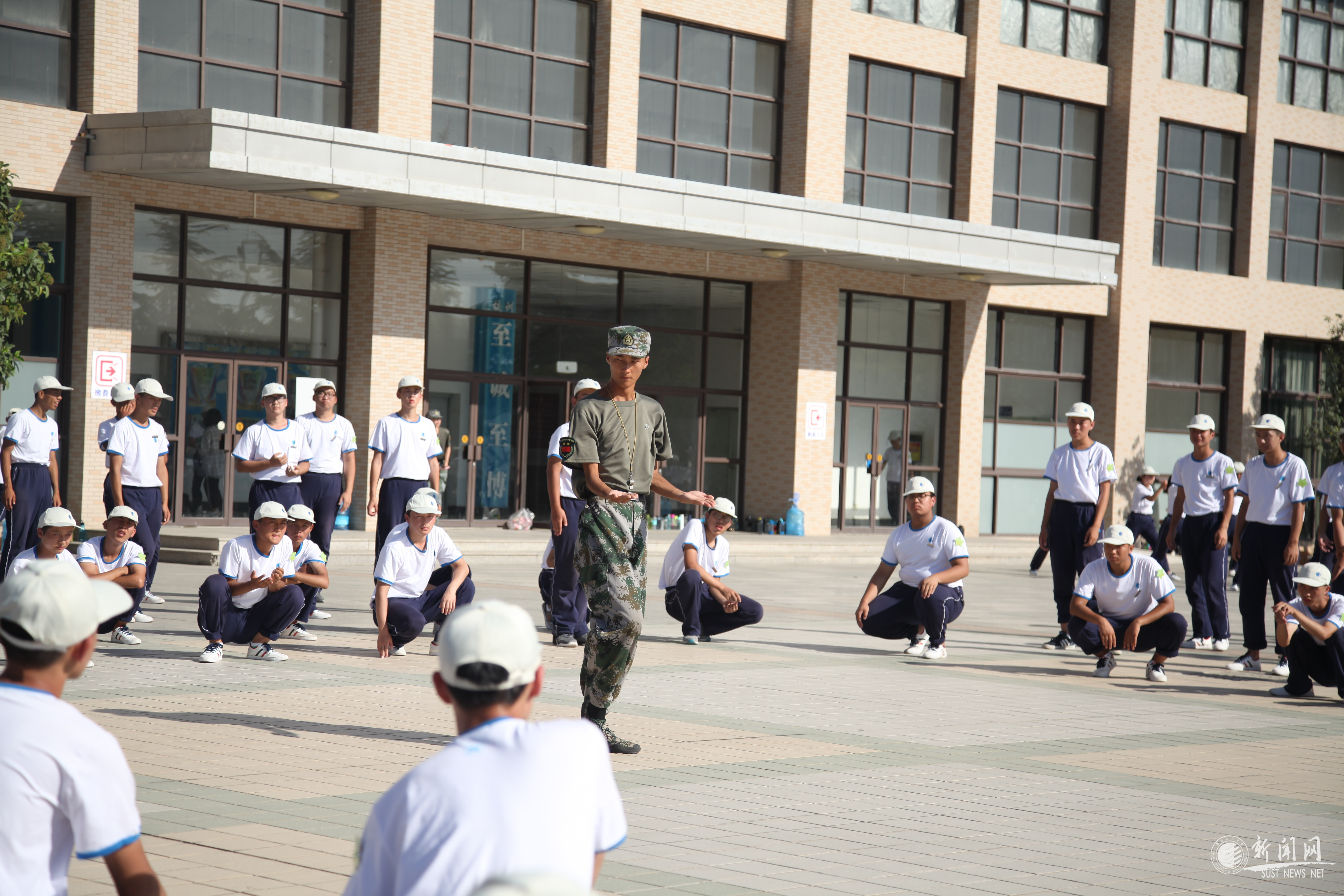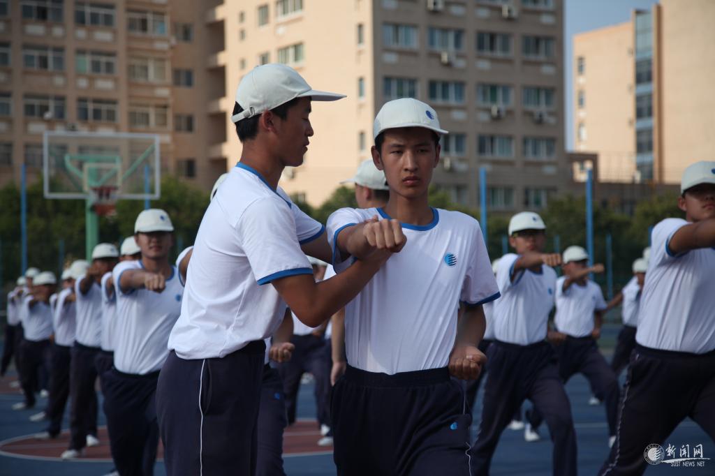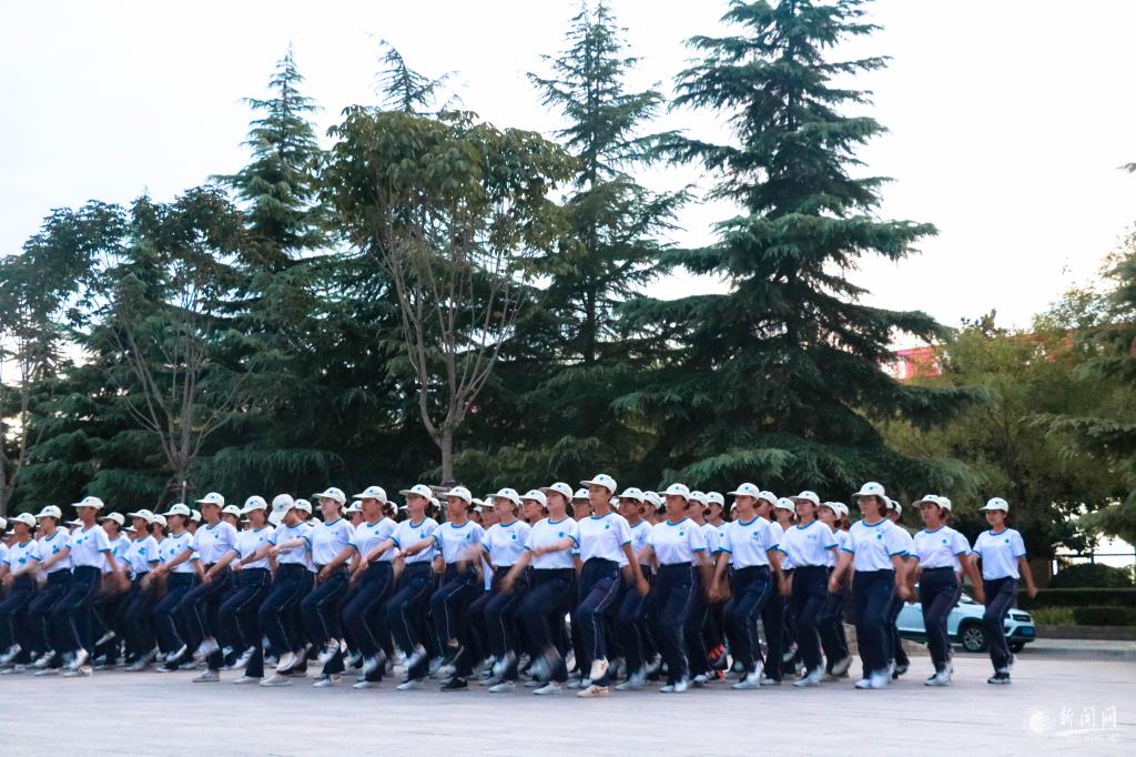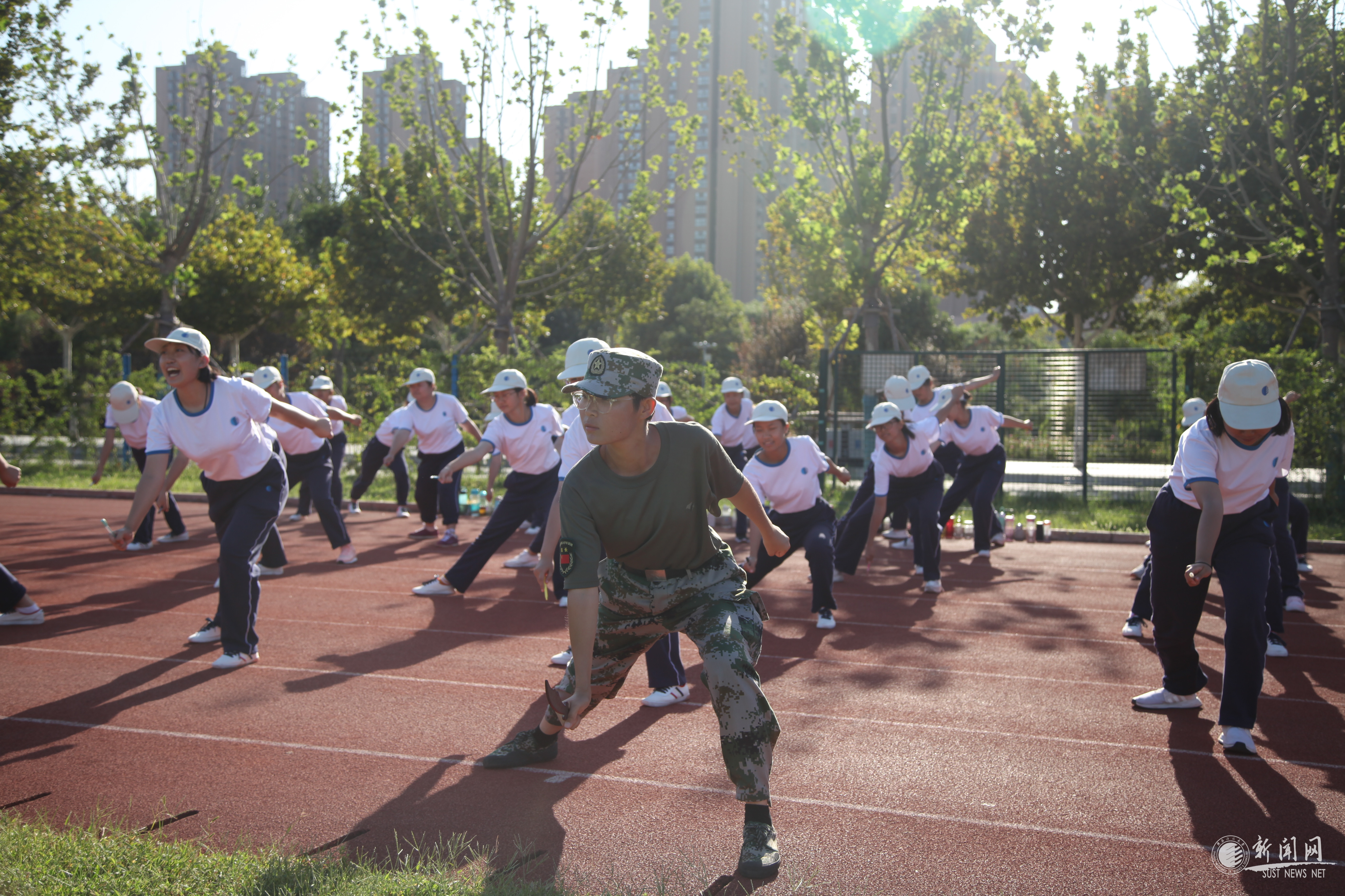 9月9日,星期日,晴。即使汗如雨下,大家也毫不懈怠,五營教官恪盡職守,努力追求動作一致,同學們認真觀察。休息之余,教官的傾心交流也將會成為同學們最美好的回憶。