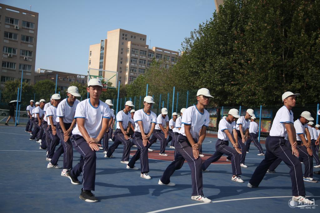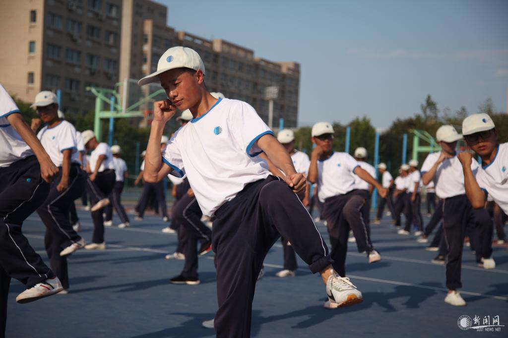 9月8日,星期六,晴。秋風何冽冽,白露為朝霜。三營正演練著軍體拳,整齊劃一,氣勢磅礴。他們喊著匕首操的口號,揮灑著汗水,跟著教官一招一式,有模有樣!