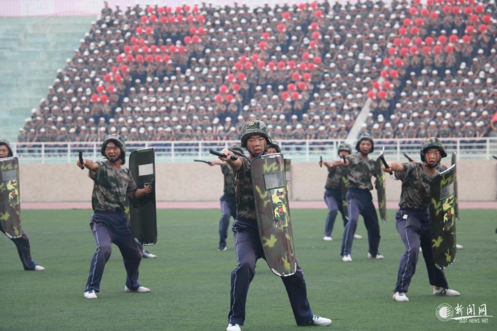 颯爽英姿五尺槍,曙光初照演兵場。9月14日上午,我校2018級大學生軍訓總結表彰大會在標準田徑場舉行。參加軍訓的5000余名新生英姿颯爽、激情滿懷,以昂揚的斗志,飽滿的精神等待檢閱。校黨委副書記溫鋒、副校長黃劍鋒及軍訓團各部門負責人、各營教導員出席大會。大會由軍訓團團長、學工(武裝)部部長李曉主持。