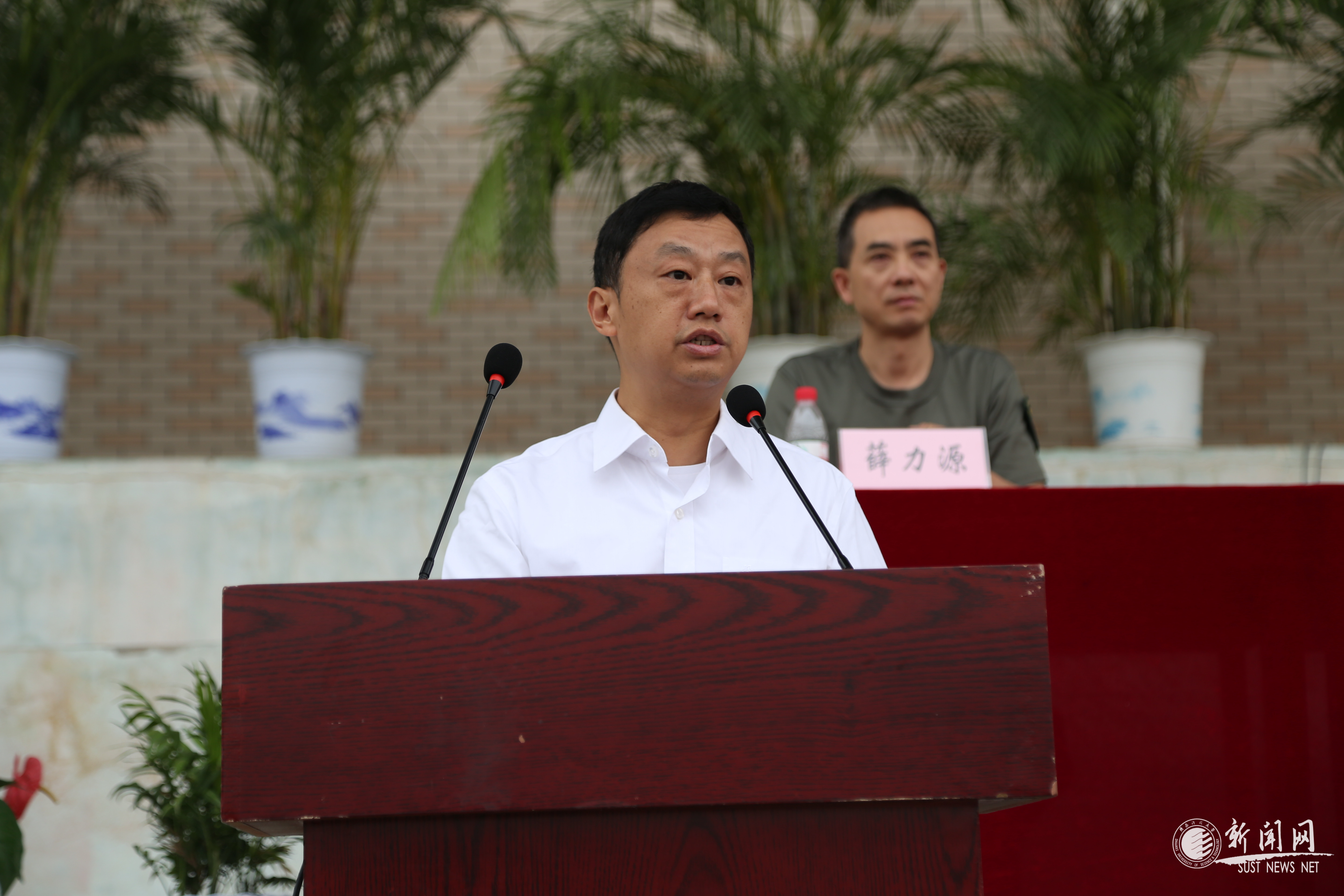 溫鋒在大會上作軍訓總結講話。他指出,軍事訓練是大學生成長的重要一課,對增強學生身體素質、磨煉學生意志品質、強化學生紀律觀念有著重要意義,學校上下高度重視,將其作為立德樹人的一項重要任務。他表示,為期11天的軍訓期間,我校國旗護衛(wèi)隊的教官們科學施教,嚴格要求,文明帶兵,以身作則,成為學校弘揚愛國主義、宣傳國防教育、建設文明校園的一道靚麗風景線;全體參訓學生以謙遜的心態(tài)投入學習,以飽滿的熱情迎接挑戰(zhàn),以頑強的意志戰(zhàn)勝高溫,以最高的要求約束自我,經(jīng)受住了各種困難和考驗,順利圓滿地完成了本次軍訓任務。他希望,全體學生秉承“三創(chuàng)兩遷”精神,恪守“至誠至博”校訓,在今后的學習生活中,刻苦學習,勇于開拓,盡快完成角色轉換,適應大學學習、生活,通過扎扎實實的奮斗實現(xiàn)自己的目標,為學校的奠基、復興、騰飛貢獻力量。