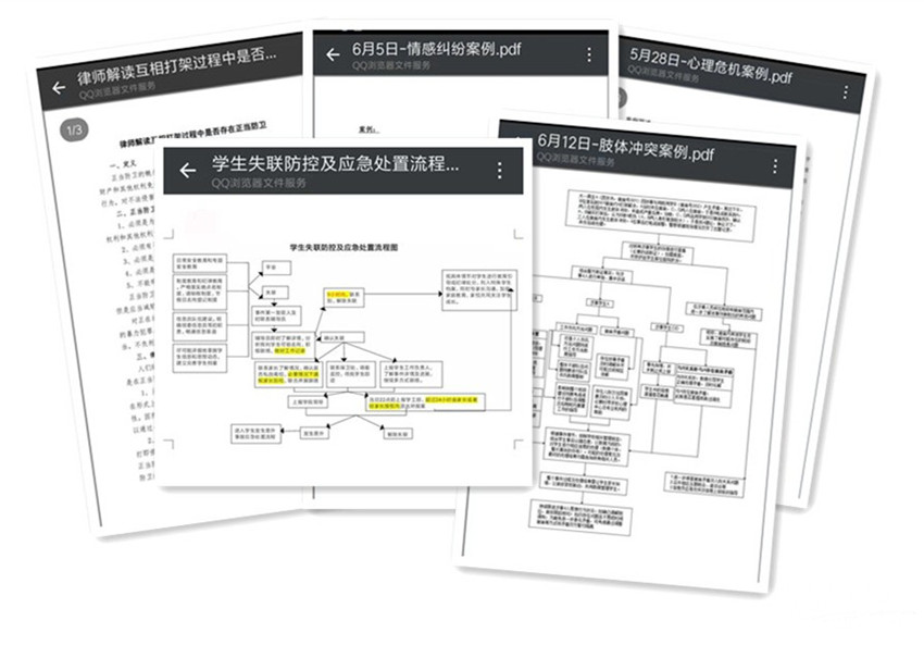 案例細(xì)分析,預(yù)防走在前。結(jié)合學(xué)院曾經(jīng)以及近期發(fā)生的工作案例,召集輔導(dǎo)員共同分析發(fā)生根源、細(xì)致梳理應(yīng)對措施、認(rèn)真總結(jié)預(yù)防方案。針對失聯(lián)、心理危機(jī)、情感糾紛、肢體沖突等安全隱患事件,分別形成應(yīng)急流程、危機(jī)處理注意事項(xiàng)等文字性材料。案例分析共享的方式,一方面促進(jìn)了輔導(dǎo)員在工作中善于思考、勤于總結(jié),另一方面為經(jīng)驗(yàn)缺乏的輔導(dǎo)員提供了工作依據(jù)和方法參考。
