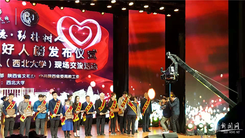 當(dāng)天,在西北大學(xué)舉辦了陜西高教系統(tǒng)好人事跡展,集中展出了2014年以來全省高教系統(tǒng)涌現(xiàn)出的全國道德模范、中國好人、陜西好人等的先進(jìn)事跡。在陜西好人榜發(fā)布儀式暨道德模范與身邊好人現(xiàn)場(chǎng)交流活動(dòng)上,播放展示了部分高教系統(tǒng)中國好人、陜西好人代表的感人事跡,現(xiàn)場(chǎng)師生表演了精彩的文藝演出,表達(dá)了青年一代建功立業(yè)新時(shí)代的青春熱情。國家級(jí)教學(xué)名師、陜西省崗位學(xué)雷鋒標(biāo)兵、西北大學(xué)耿國華教授為俞茂宏、王輝、李萌等中國好人、陜西好人代表頒發(fā)了道德傳家寶。