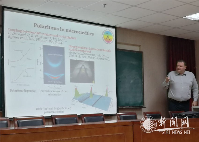 11月13日下午,俄羅斯科學(xué)院光譜研究所首席科學(xué)家Yaroslav Kartashov教授應(yīng)邀在文理學(xué)院440報(bào)告廳開展前沿科學(xué)報(bào)告。報(bào)告題目為“Nonlinear phenomena in polariton topological insulators”(激子拓?fù)浣^緣體中的非線性現(xiàn)象)。報(bào)告由物理學(xué)科學(xué)術(shù)帶頭人劉建科教授主持。文理學(xué)院物理系部分教師、研究生和本科生參加了報(bào)告會(huì)。同時(shí),西安交通大學(xué)、電子科技大學(xué)和我校電信學(xué)院部分教師和研究生也前來(lái)聽取報(bào)告。