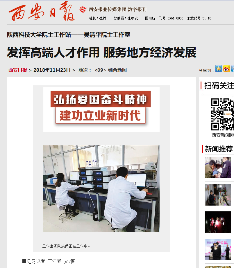 11月23日,西安日報以《發(fā)揮高端人才作用 服務(wù)地方經(jīng)濟(jì)發(fā)展》為題,報道了我校吳清平院士工作站取得突出科研成果的事跡,全文轉(zhuǎn)載如下: