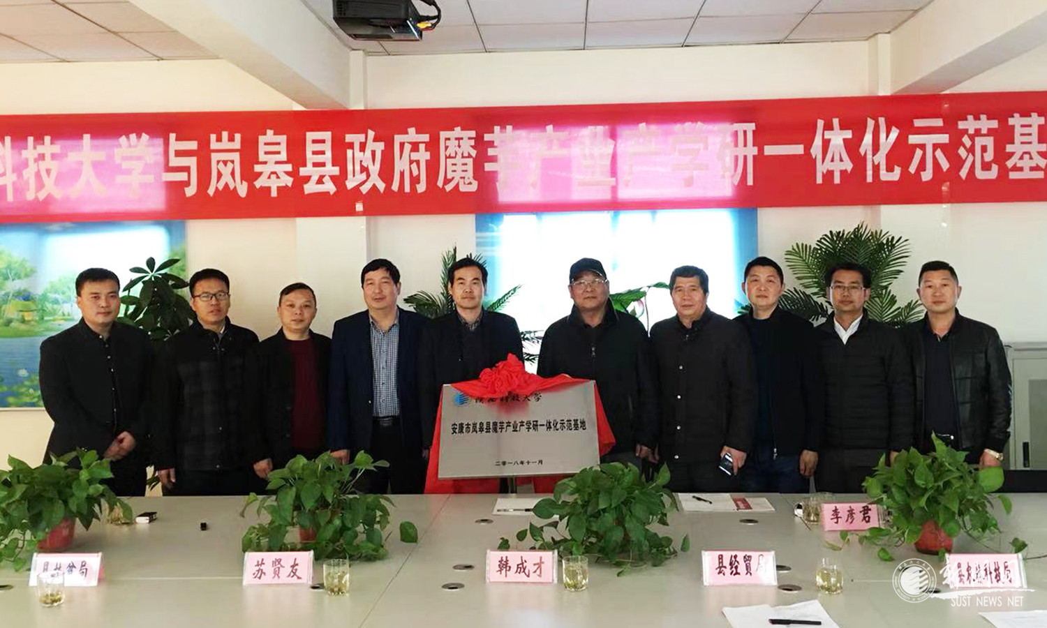王樹茂、韓成才一起為嵐皋縣魔芋產(chǎn)業(yè)產(chǎn)學(xué)研一體化示范基地揭牌。