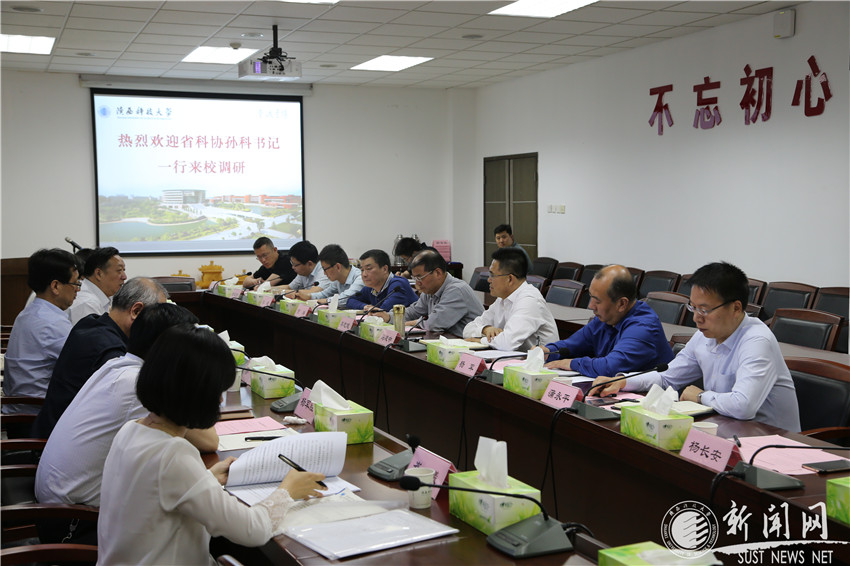 孫科指出,高校是科技工作者密集、科技人才薈萃、科技社團(tuán)活躍的地方。陜西科技大學(xué)是西部地區(qū)唯一一所以輕工為特色的多科性大學(xué),是陜西省重點建設(shè)的高水平大學(xué),近年來,學(xué)校在發(fā)展過程中取得了諸多成績,整體水平居省屬高校前列。他表示,科協(xié)作為黨和政府聯(lián)系科技工作的橋梁紐帶,要按照“為科技工作者服務(wù)、為創(chuàng)新驅(qū)動發(fā)展服務(wù)、為黨和政府科學(xué)決策服務(wù)、為提高全民科學(xué)素質(zhì)服務(wù)”的職責(zé)任務(wù),加強與陜西科技大學(xué)聯(lián)系與合作。雙方還就弘揚 “大西遷精神”、尋找最美科技工作者、重視學(xué)會建設(shè)、加強人才培養(yǎng)和舉薦等事項進(jìn)行了座談交流。