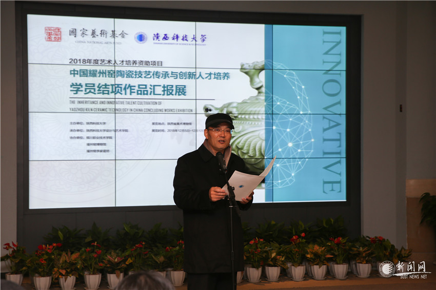 12月5日上午,由陜西科技大學(xué)主辦,我校設(shè)計與藝術(shù)學(xué)院承辦,銅川職業(yè)技術(shù)學(xué)院、耀州窯博物館和耀州窯李家瓷坊協(xié)辦的國家藝術(shù)基金人才資助項目“中國耀州窯陶瓷技藝傳承與創(chuàng)新人才培養(yǎng)”學(xué)員作品成果展在陜西省美術(shù)博物館開幕。來自陜西省文化廳、工信廳、銅川市委相關(guān)領(lǐng)導(dǎo),我校與省內(nèi)兄弟院校相關(guān)領(lǐng)導(dǎo),耀州瓷相關(guān)專家、學(xué)者,參展學(xué)員及相關(guān)專業(yè)師生等出席開幕式。開幕式由設(shè)藝學(xué)院院長詹秦川主持。