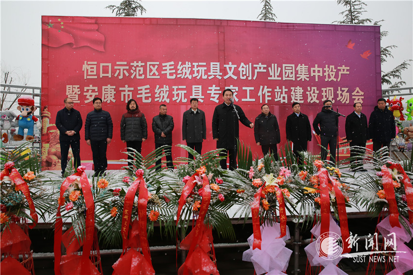 12月29日上午,安康市毛絨玩具文創(chuàng)產(chǎn)業(yè)園恒口現(xiàn)場推進會暨安康文化創(chuàng)意設(shè)計專家工作站揭牌儀式在安康市漢濱區(qū)恒口鳳凰社區(qū)召開。我校黨委書記姚書志教授,安康市委副書記、市長趙俊民出席活動并共同為工作站揭牌?;顒佑筛笔虚L、恒口示范區(qū)黨工委書記何邦軍主持。我校特聘教授余隋懷、設(shè)計與藝術(shù)學院執(zhí)行院長詹秦川被聘為工作站首席專家。