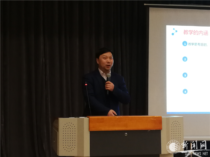1月16日下午,我校第七場“教育教學論壇”系列報告會在人文樓五樓報告廳舉行。論壇邀請了萬人計劃領軍人才、國家級教學名師、西北大學賴紹聰教授做了題為《精心設計課堂教學,讓每堂課深入人心》的報告。報告會由教務處主辦,環(huán)境科學與工程學院承辦。副校長郭霄鵬出席報告會,教務處相關人員、環(huán)境學院全體教師、各學院(部)教學副院長及教師代表參加了此次報告會,報告會由教務處處長費貴強主持。