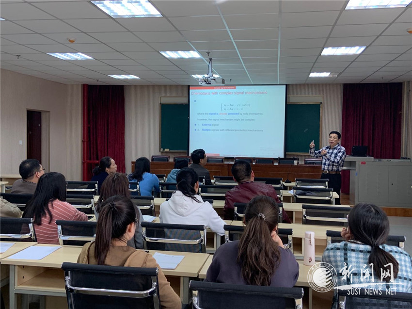 趨化性是生物對(duì)多種化學(xué)物質(zhì)的濃度梯度產(chǎn)生趨向或離避響應(yīng)的行為。趨化性不僅對(duì)研究動(dòng)物和昆蟲類有較強(qiáng)的生物意義,而且在生物除污、感染的發(fā)病機(jī)制、微生物遷移等領(lǐng)域的研究中也具有重要意義。陶教授首先從最早刻劃趨化現(xiàn)象的經(jīng)典Keller-Segel模型出發(fā),介紹了具有復(fù)雜信號(hào)機(jī)制的趨化模型。然后,針對(duì)具有間接信號(hào)產(chǎn)生的非局部趨化模型和一類趨向性串聯(lián)模型,分別證明了解的整體存在性。陶教授介紹了證明的思路過(guò)程及關(guān)鍵步驟。