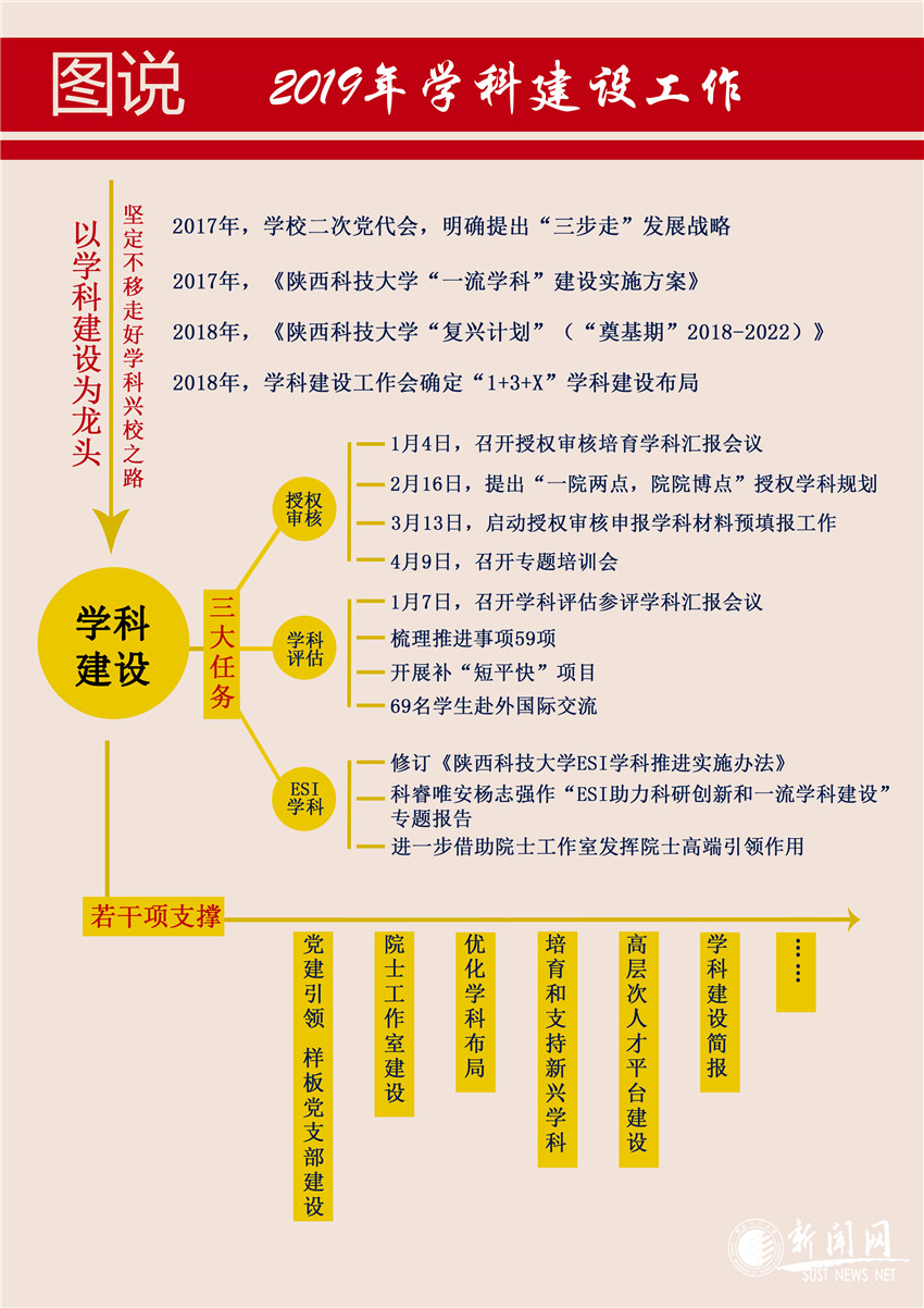 去年,第四輪學(xué)科評(píng)估結(jié)果公布后,學(xué)校召開全校學(xué)科建設(shè)工作會(huì)議,確定了“1+3+X”的學(xué)科建設(shè)布局,明確了第五輪學(xué)科評(píng)估、學(xué)位授權(quán)審核申報(bào)、ESI學(xué)科提升計(jì)劃三大學(xué)科建設(shè)核心任務(wù)。圍繞三大核心工作,學(xué)校投入學(xué)科建設(shè)經(jīng)費(fèi)2400萬(wàn),按照“固優(yōu)、強(qiáng)特、扶需、重基、創(chuàng)新”的建設(shè)思路,重點(diǎn)支持優(yōu)勢(shì)、特色學(xué)科沖擊第五輪學(xué)科評(píng)估和博士學(xué)位授權(quán)申報(bào)。學(xué)科辦先后出臺(tái)了《陜西科技大學(xué)學(xué)科與研究生教育標(biāo)志性成果及項(xiàng)目獎(jiǎng)勵(lì)辦法》和《陜西科技大學(xué)ESI學(xué)科推進(jìn)實(shí)施辦法》“雙一流”建設(shè)的重要文件;通過(guò)多方調(diào)研論證提出《電氣與信息工程學(xué)院學(xué)科專業(yè)暨學(xué)院調(diào)整初步方案》;成功舉辦15場(chǎng)“院士論壇”、中國(guó)工程院“第六屆食品安全高峰論壇”等高水平學(xué)術(shù)活動(dòng);開展6個(gè)在建院士工作室的考核工作等。