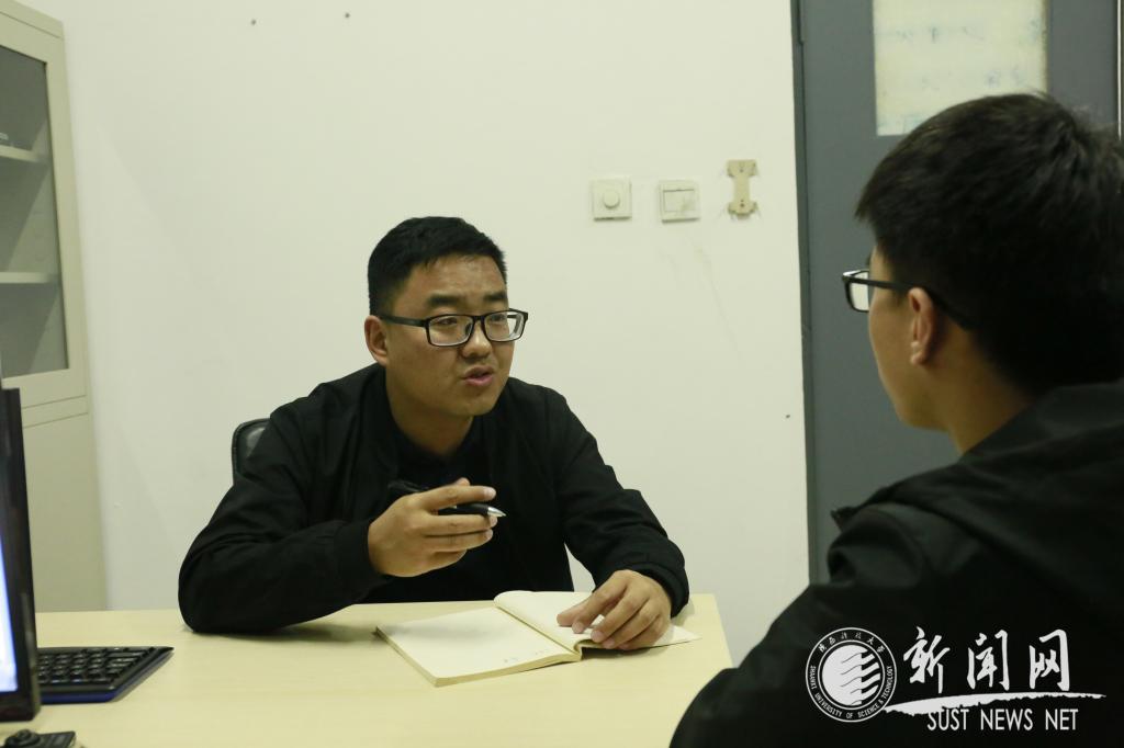 晚上十點,在八公寓輔導員工作站,薛戰(zhàn)鋒老師正在給一名面臨兩份求職選擇的學生做分析指導,他詳細了解情況后,用決策平衡單幫學生分析了兩份工作的優(yōu)勢和劣勢,幫助這名學生澄清求職訴求,做出適合自己的決策。